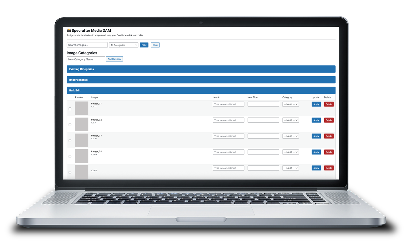 Easily organize all your product images in one central library. Sort and filter images by categories, assign tags, and add SEO-friendly metadata to improve website search rankings. With simple bulk uploads and easy management, your team can quickly find the right images while ensuring your products are presented consistently and optimized for online visibility.